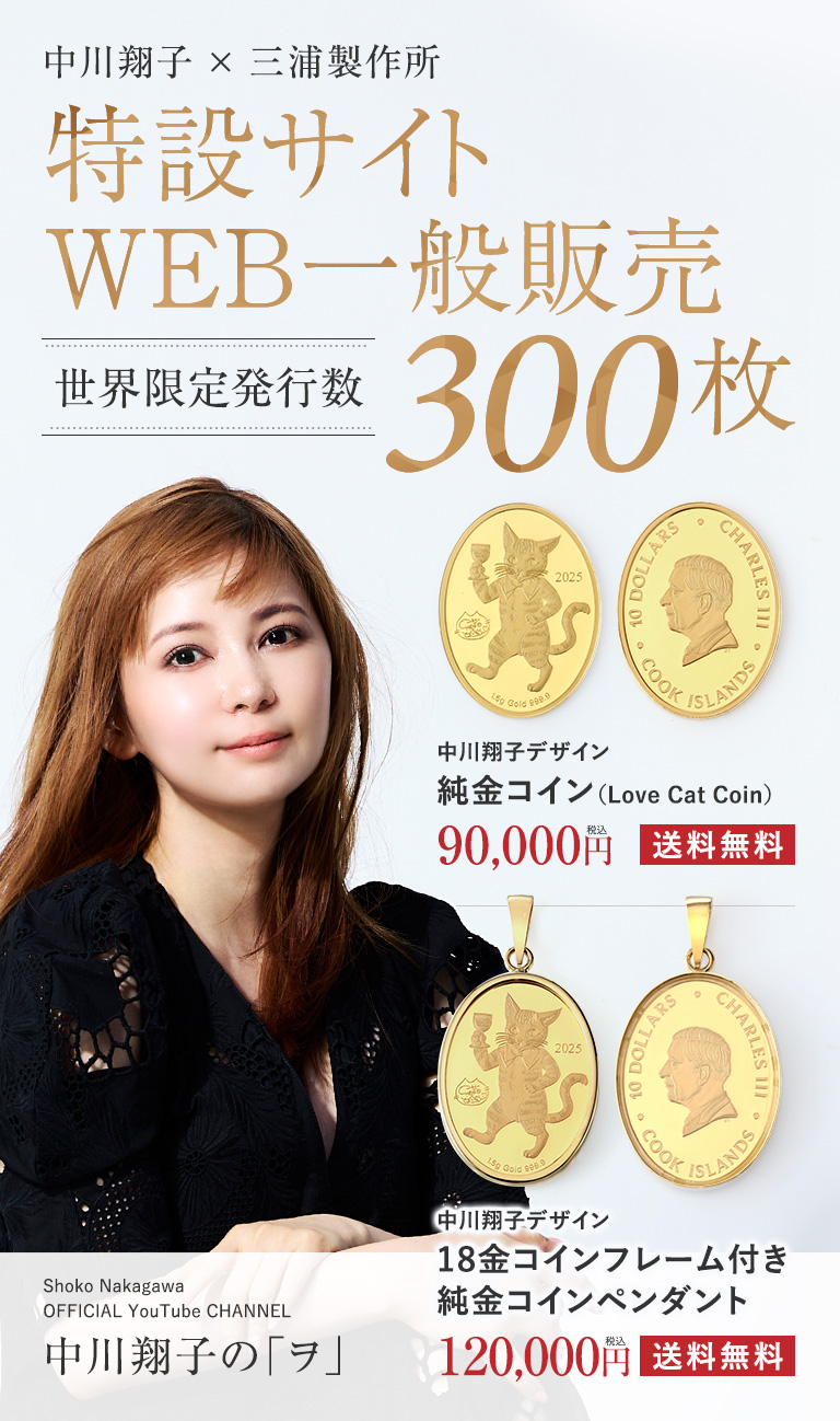 先代社長である三浦明氏、現社長である三浦佑基氏と70年間続いています。90年より海外へ進出、92年にはミウラ・ヨーロッパをイタリアに設立、続いて93年にロンドン支局を設立、イタリアンジュエリーの輸入加工販売からビジネスを広げ英国王立造幣局(ロイヤル・ミント)と業務提携を果たし、クック諸島政府公認クック・アイランズ・コインを発行、現在、提携する造幣局も増え、毎年、様々なオリジナルコインの企画販売を行っています。